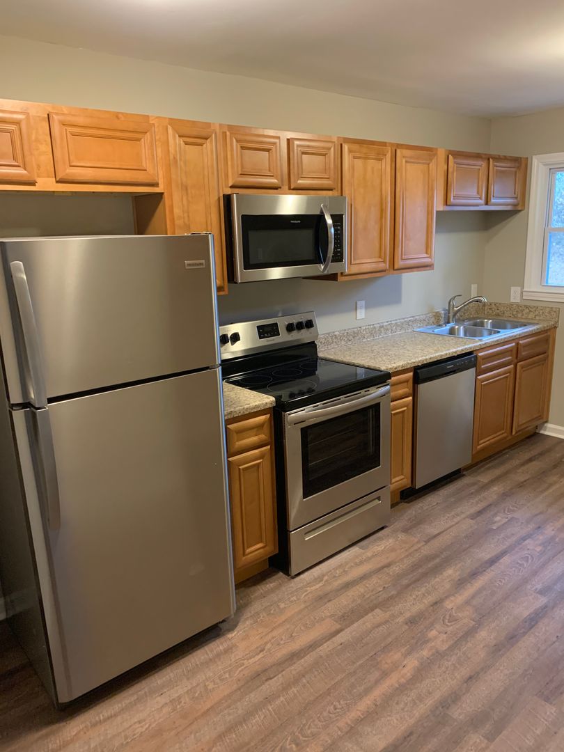 2 bedroom 1 bath duplex with all new interior. Unit features new kitchen cabinets, countertops, stainless steel appliances (stove, refrigerator, microwave, dishwasher) new windows, water heater, electric heat, new flooring, interior paint, new tub and bathroom vanity. Close to shopping and restaurants.